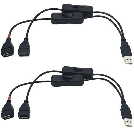 USB スイッチ, CESFONJER 2 個 30CM USB 延長ケーブル 2分岐 二股コード オン/オフスイッチ付き, 小さなデスクランプ/ファンのためにフィットし、LEDライトを