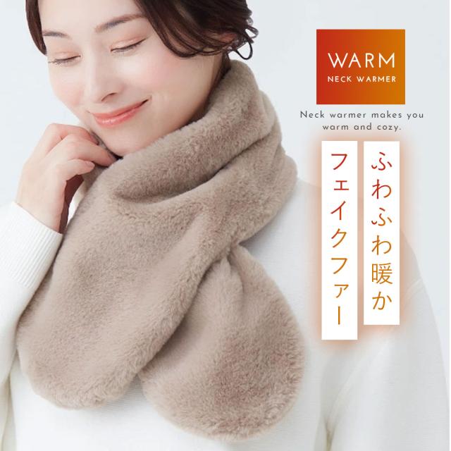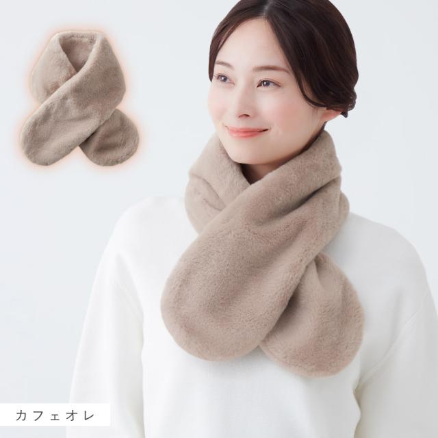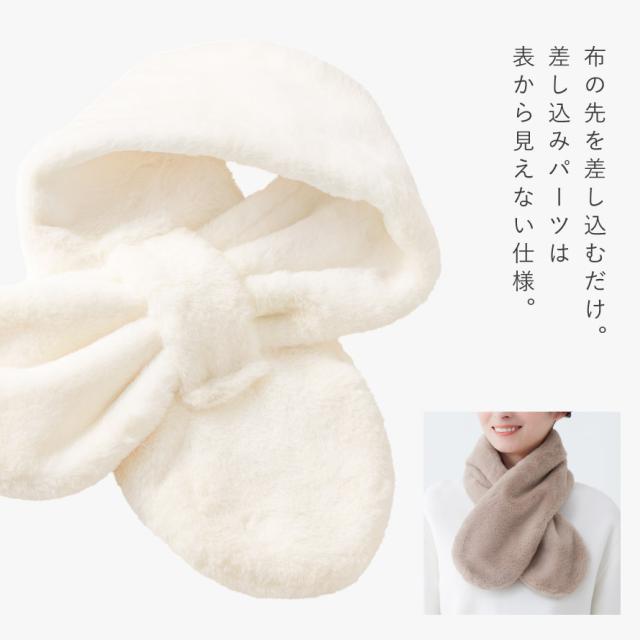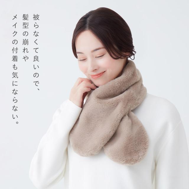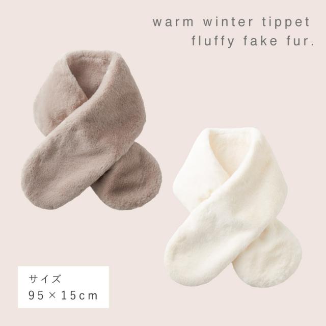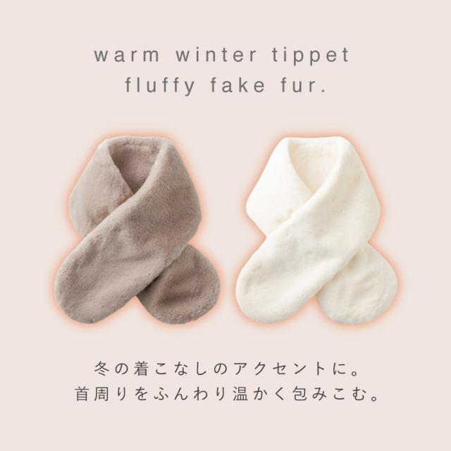 ふわふわ素材で首元暖か、もふもふ華やかなティペット。ふわふわとした毛足のフェイクファーを使用。首周りをふんわり温かく包みます。