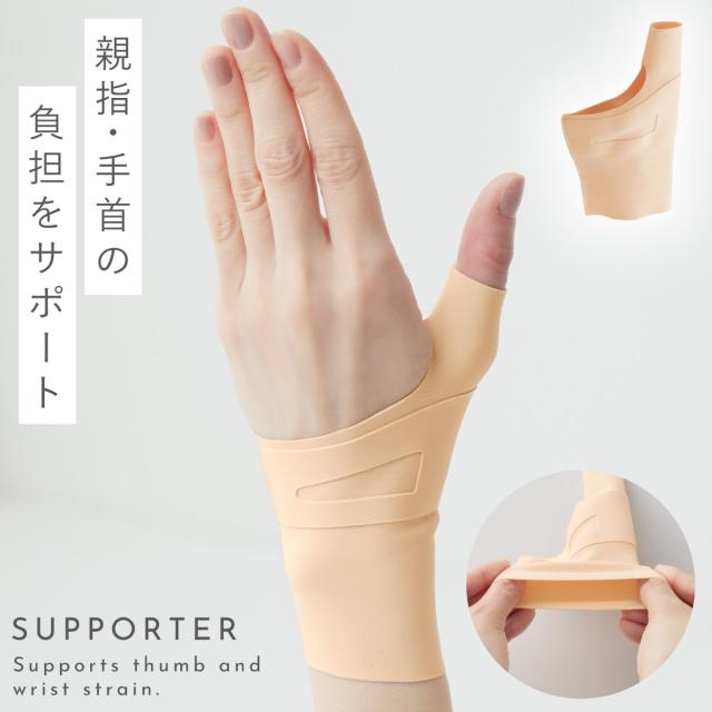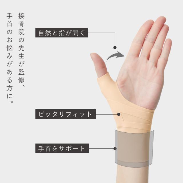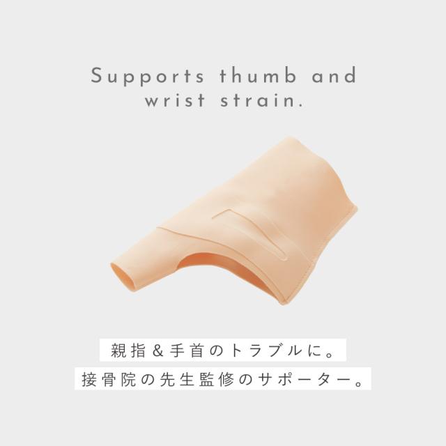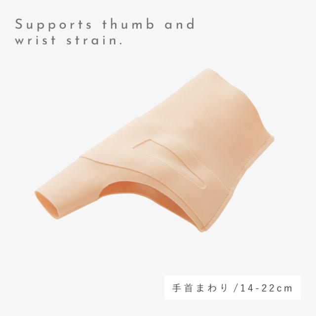 親指の付け根、手首が辛い方におすすめ。左右兼用。カラーは目立たないベージュ、安心の日本製です。
