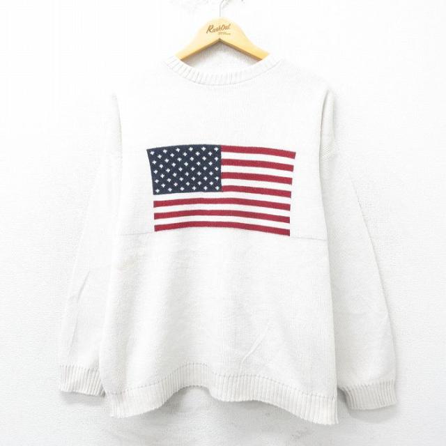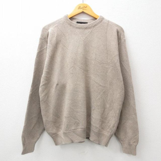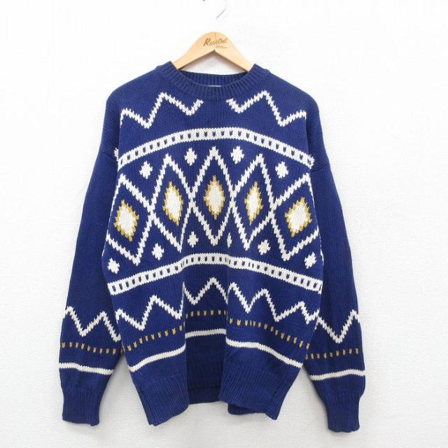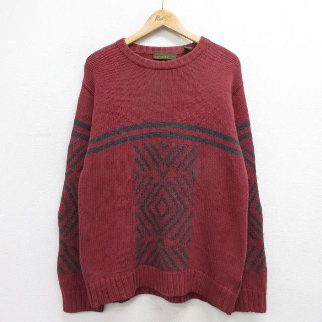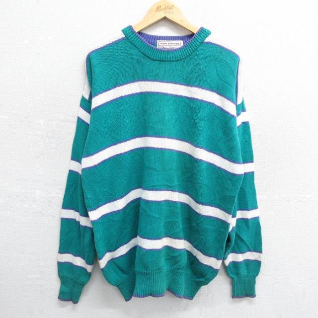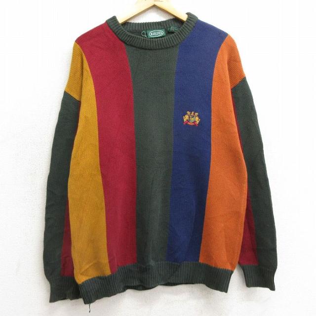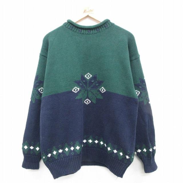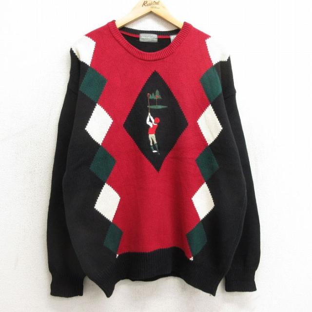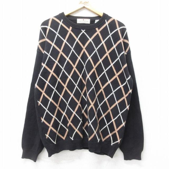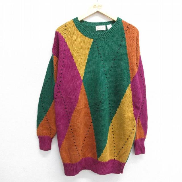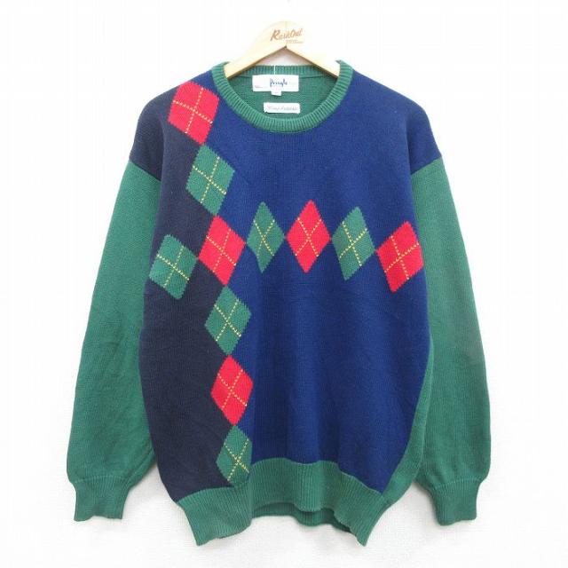 古着 長袖 セーター メンズ 00年代 00s アーガイル コットン クルーネック 緑他 グリーン Lサイズ 中古 ニット トップス 中古 古着