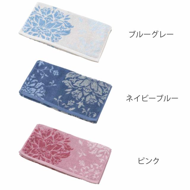 タオル DECORMUSEEプレシャス トイレタオル 約34×75cm ( フェイスタオル 手拭きタオル ハンドタオル ジャガード織 綿100 日本製 トイレ用タオル 34×75 コットン 汗拭き 花柄 紋章柄 ブルーグレー ネイビーブルー ピンク )