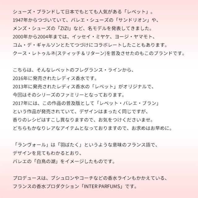こちらは、そんなレペットのフレグランス・ラインから、2016年に発売されたレディス香水です。2013年に発売されたレディス香水の「レペット」がオリジナルで、今回はそのシリーズのファミリーとなっております。