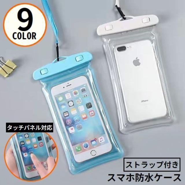 ストラップ付きのIPX8スマホ防水ケースです。