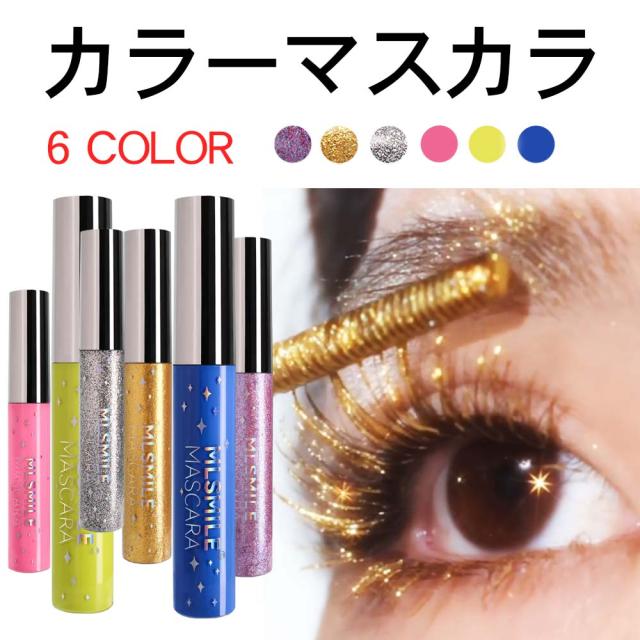 カラーマスカラ キラキラ ロング 防水 落ちない ウォータープルーフ ラメ 極細 速乾 滲みにくい コスプレ ハロウィン メイク 6カラー