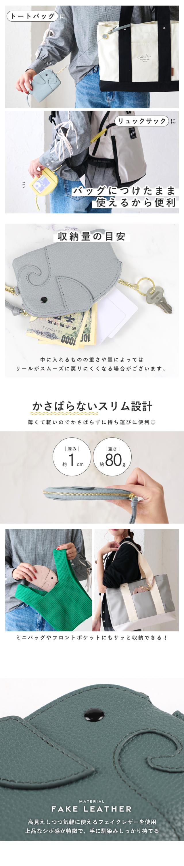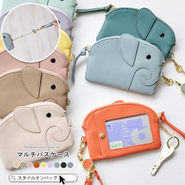 パスケース リール付き レディース メンズ ID ICカード キーケース 定期入れ 小銭入れ コインケース カード入れ カードケース キーリング ゾウさん 可愛い 大人 ギフト プレゼント LIZDAYS リズデイズ【lz-67403】