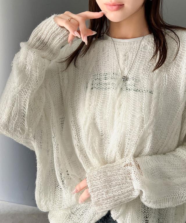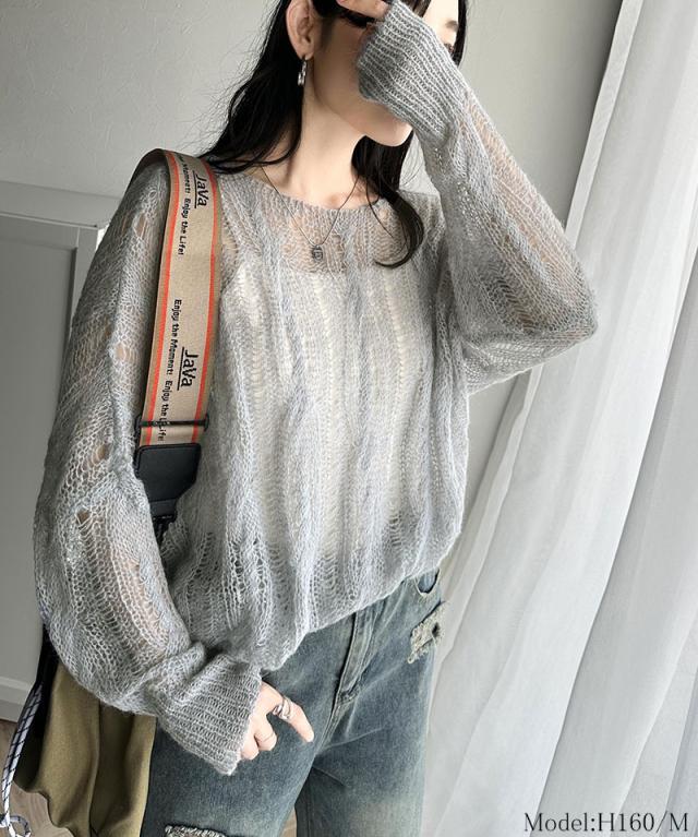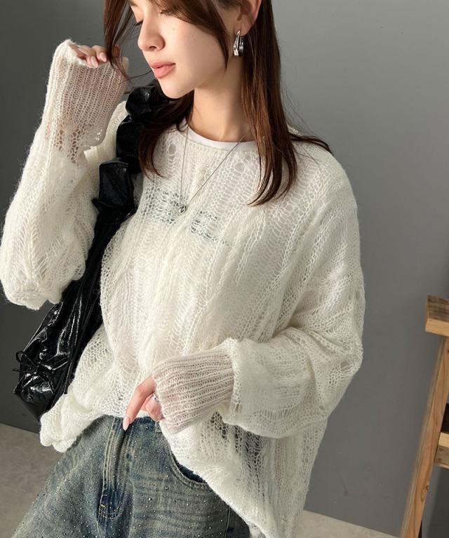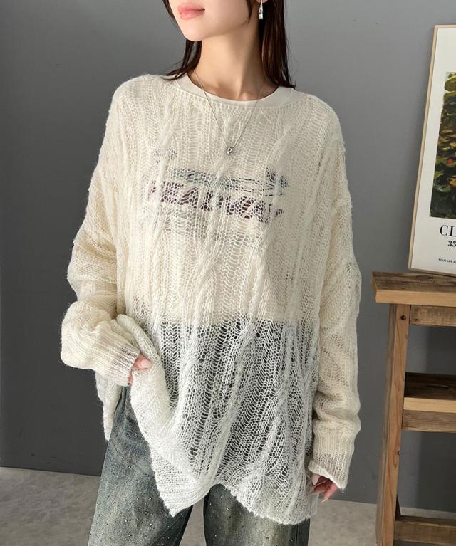 クラシカルエルフ春新作 トップス ニット レディース 透かし ケーブル ゆる編み オーバー ニット 華奢見せ ロングシーズン レイヤードコーデ ゆるっと オーバーサイズ 大きいサイズ 2026ss ce1260357