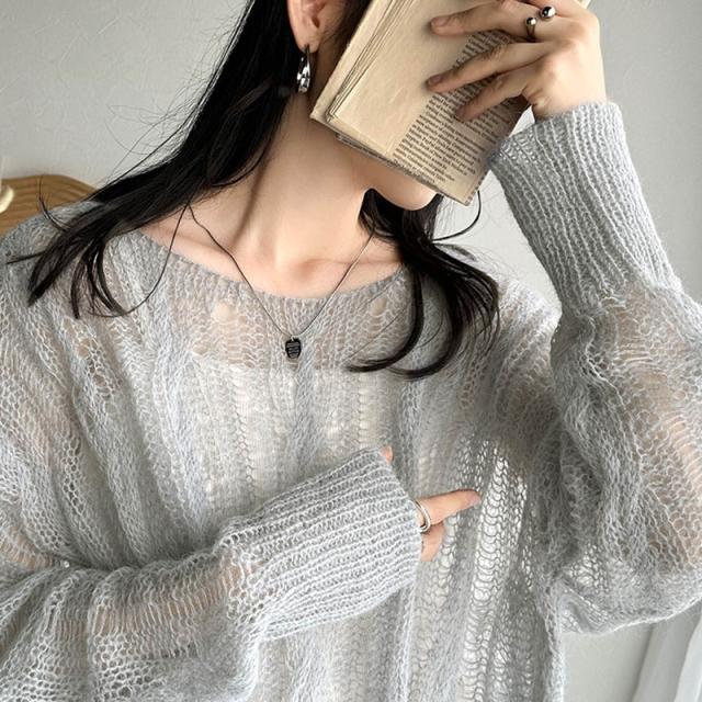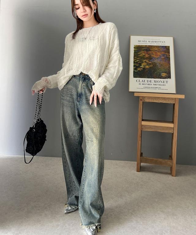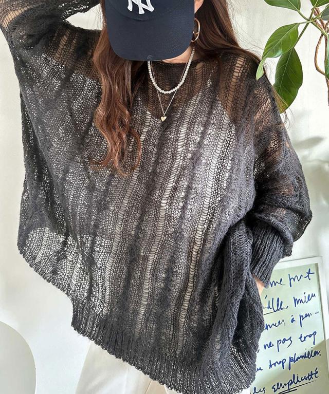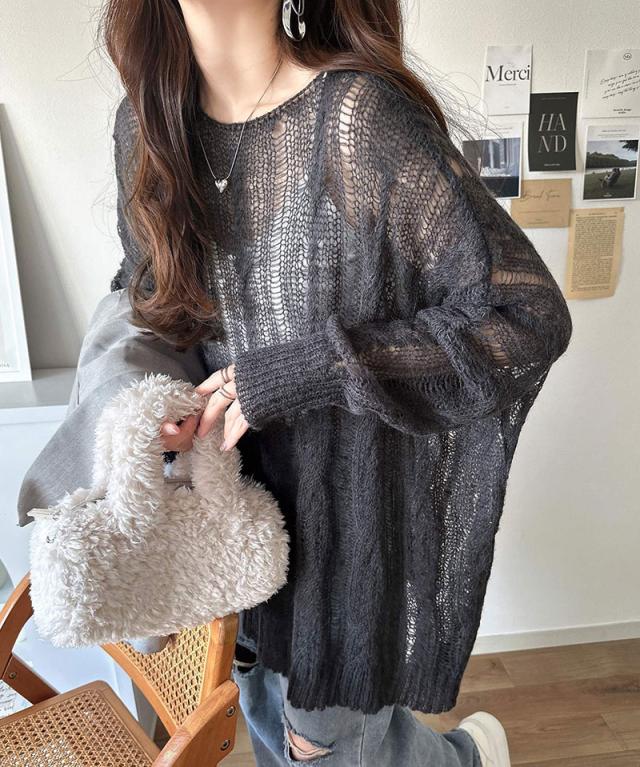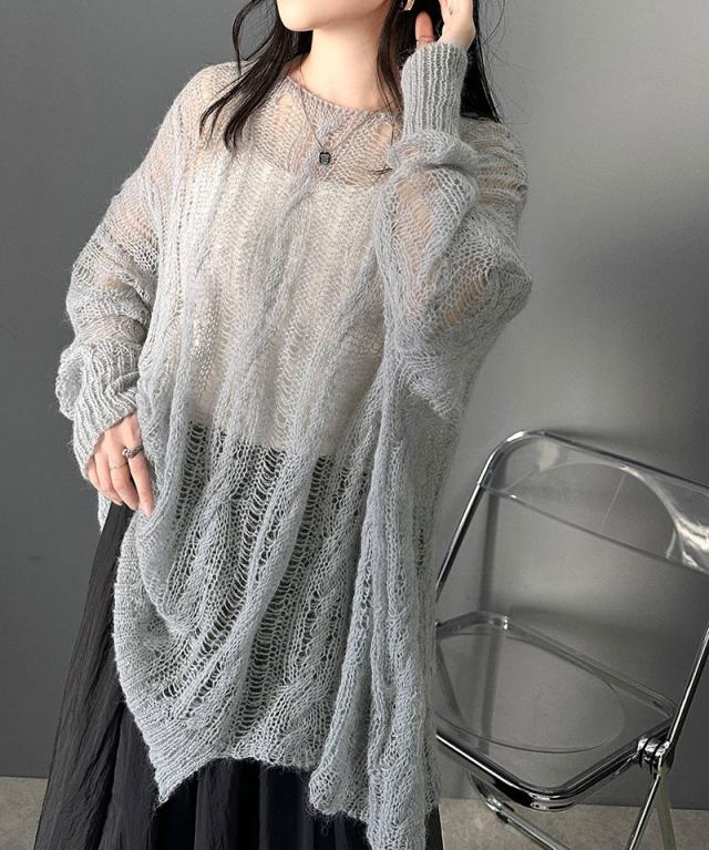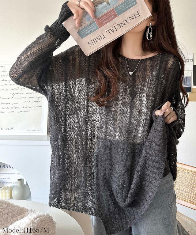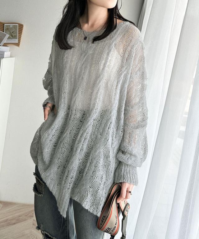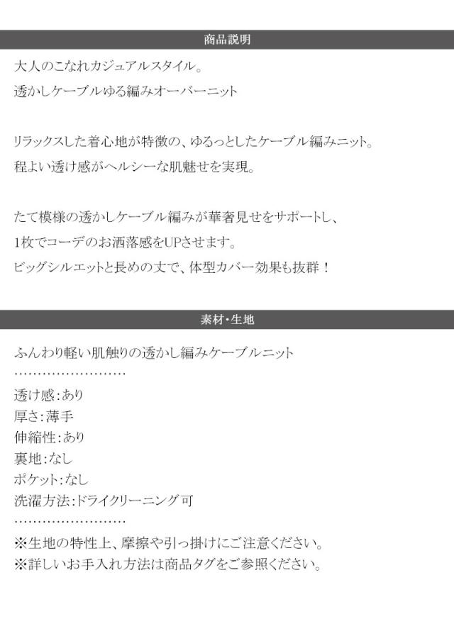★大人のこなれカジュアルスタイル。透かしケーブルゆる編みオーバーニット★