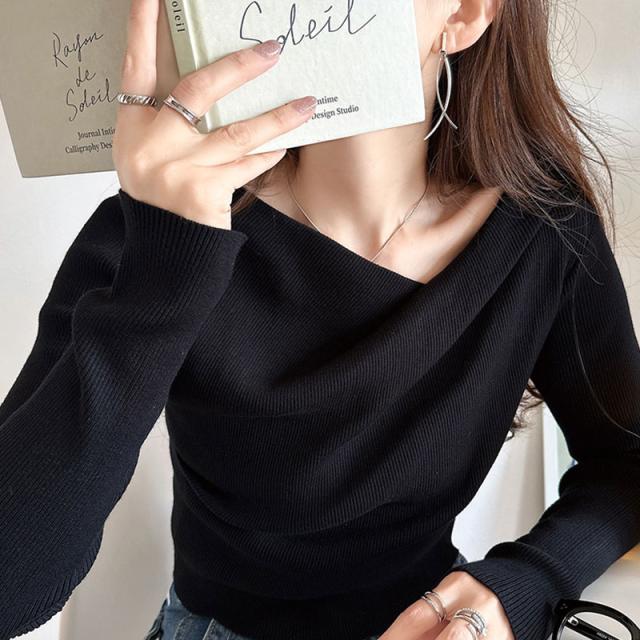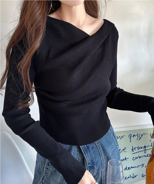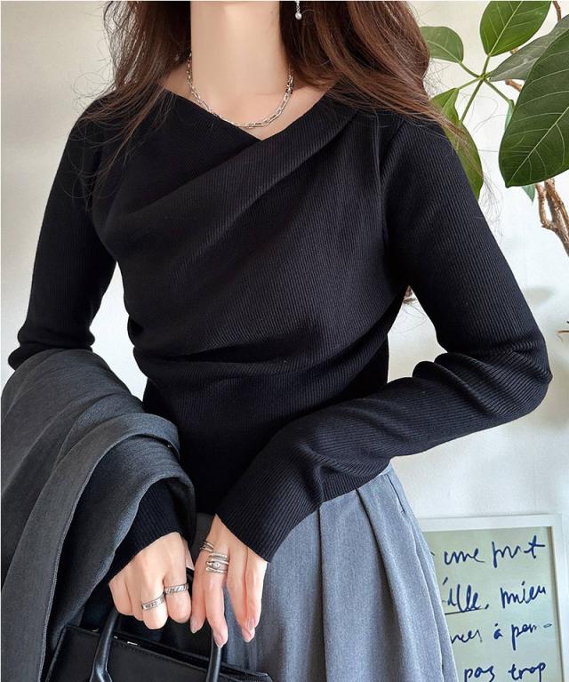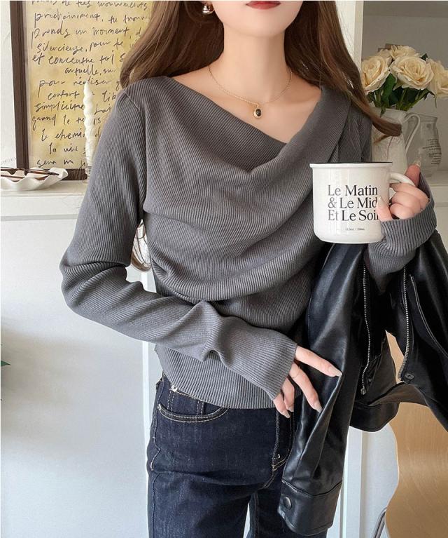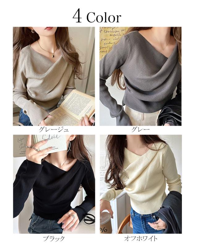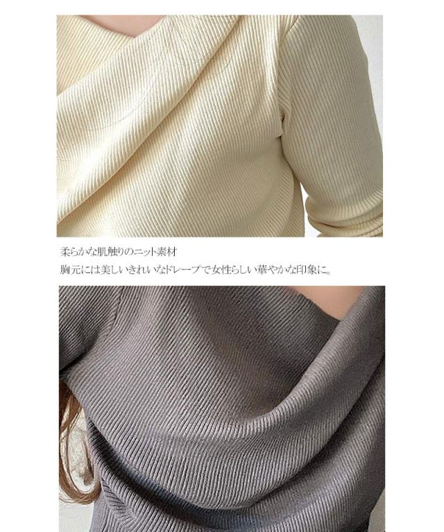 クラシカルエルフ冬新作 トップス ニット レディース 胸元 ドレープ デザイン プルオーバー 肌触り 柔らか 華奢魅せ スタイルアップ 着回し ゆるっと オーバーサイズ 大きいサイズ 2024aw ce1260353