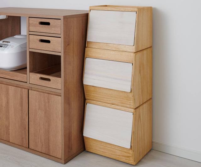同じシリーズの「こめ櫃10kg」や「やさい櫃」と積み重ねて使用する事ができます。