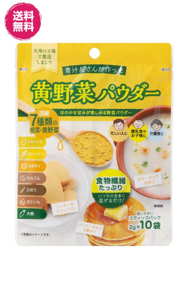 黄野菜パウダー 粉末 (黄野菜パウダー2g×10/袋×4P) 送料無料 食物繊維 ステックパック 離乳食 介護食 野菜不足 健康応援