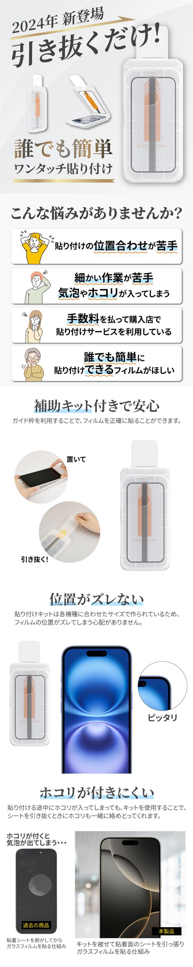 iPhone 16フィルム iPhone15フィルム ガラスフィルム アイフォン16 アイフォン15 フィルム iPhoneフィルム保護フィルム 強化ガラス 引き抜くだけ 貼り付けガイド一体型