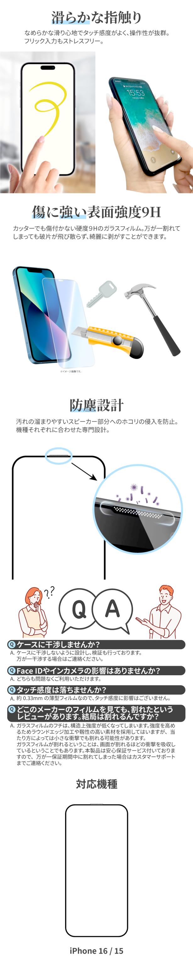 iPhone16 アイフォン16 アイフォンシックスティーン あいふぉん16 あいふぉんしっくすてぃーん iPhone15 アイフォン15 アイフォンフィフティーン あいふぉん15 あいふぉんふぃふてぃーん ふぃるむ 画面保護 画面シート 保護シート 強化ガラス 高透明 指紋つきにくい ガラス保護フィルム 画面フィルム