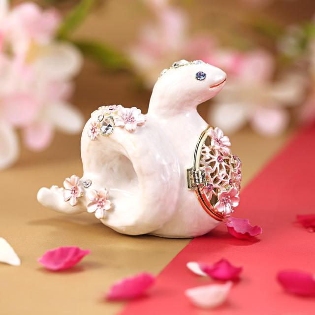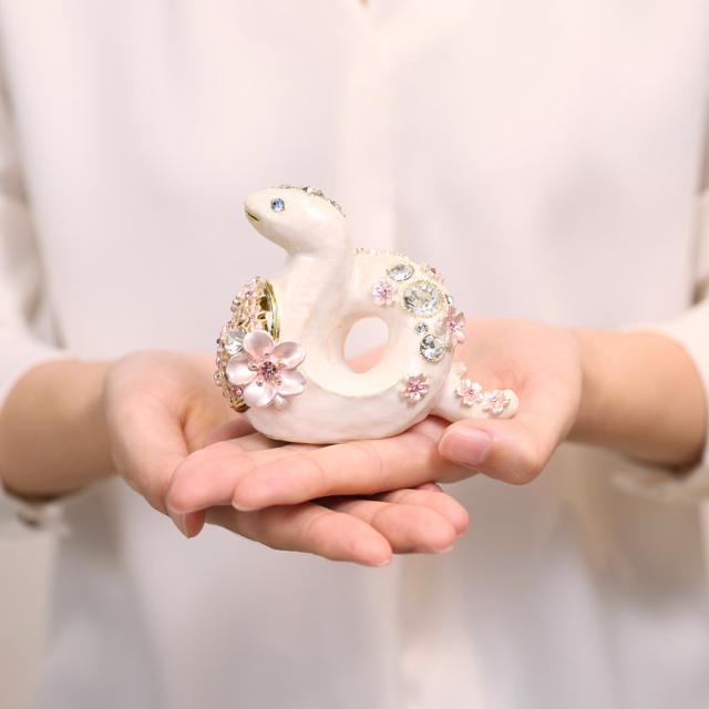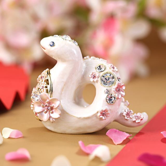 <桜小蛇>白蛇 巳年 干支の置物 ジュエリーボックス インテリア雑貨 干支 2025年 桜 サクラ さくら お母さん アクセサリーケース リングケース 宝石箱 ギフト 誕生日プレゼント ギフトボックス入り 東京銀座PICALS 東京銀座ピカルス ピィアース EX630-1