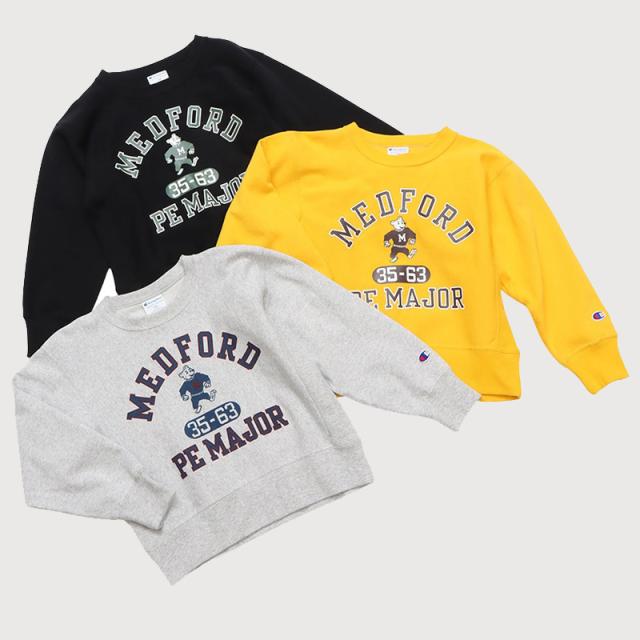 KIDS REVERSE WEAVE(R) CREW NECK SWEATSHIRT 24FW チャンピオンが「ザ キング オブ スウェット」と呼ばれる由来となった、チャンピオンを代表する製法の「REVERSE WEAVE(リバースウィーブ)」を採用したキッズ用クルーネックスウェット。