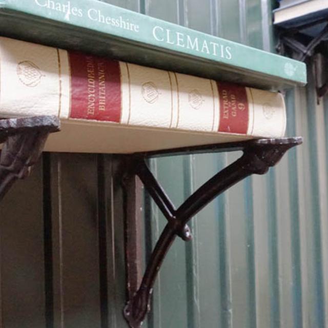 アンティークの風合いが味わい深いブラケットです。直線的でシンプルなデザインの中に、逞しさや意思の強さが感じられます。
