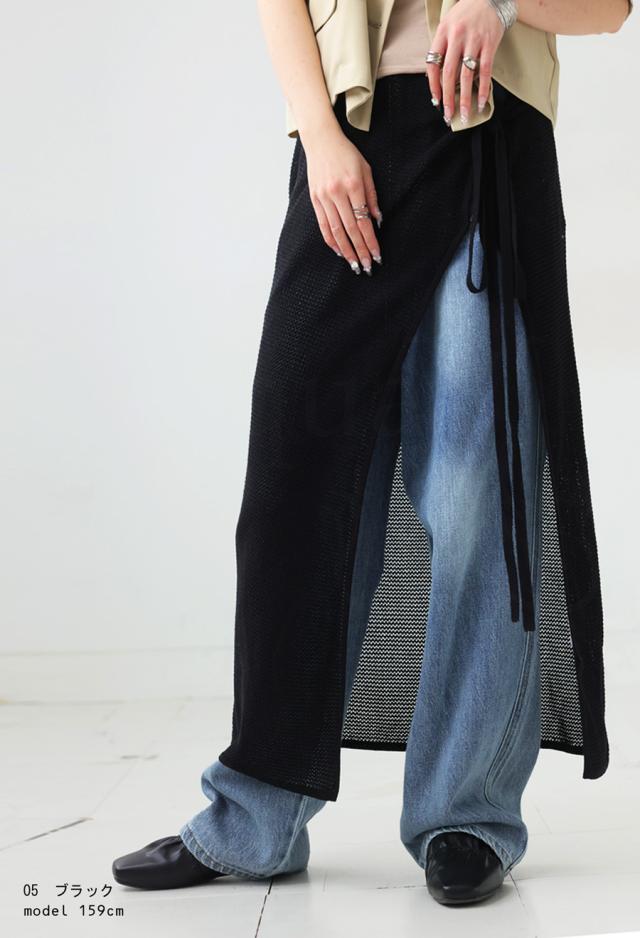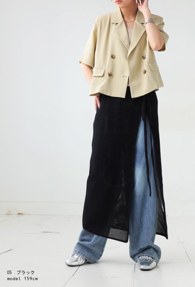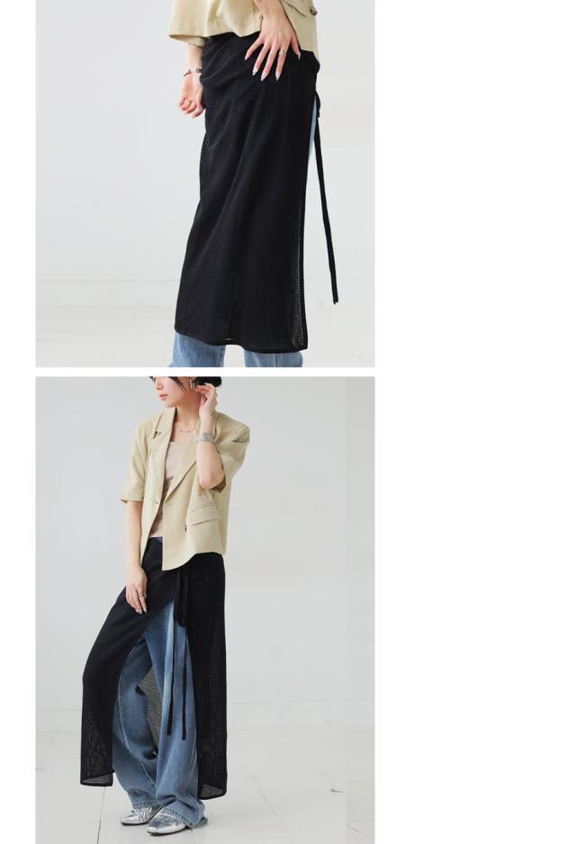 モードな雰囲気がたっぷりなメッシュ生地を使用したラップスカート。