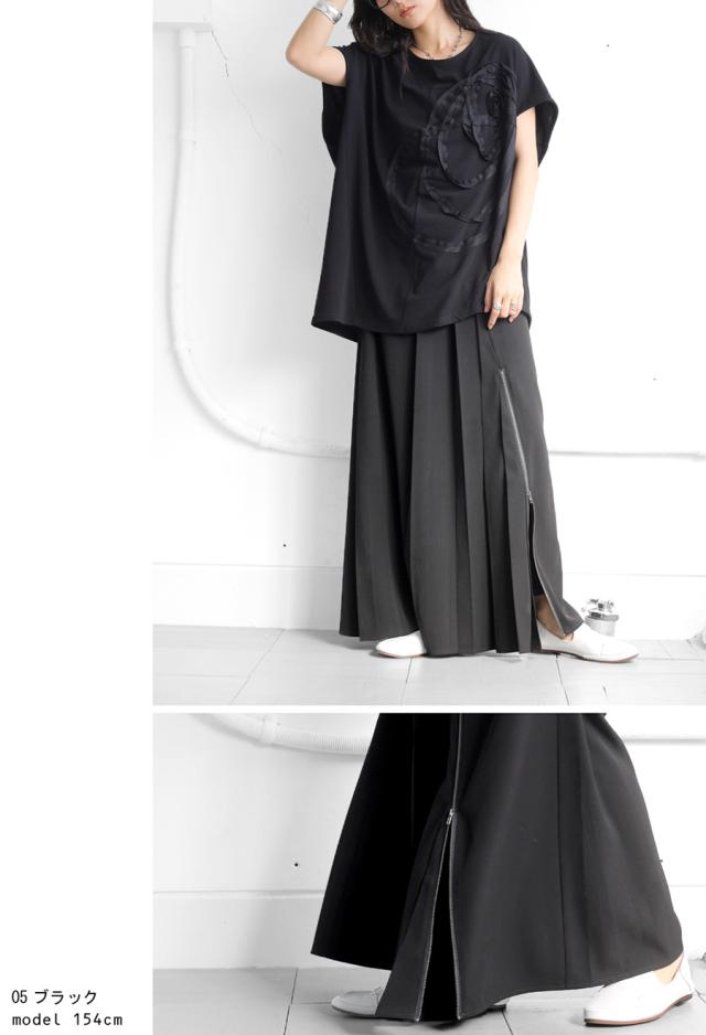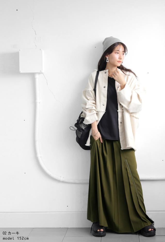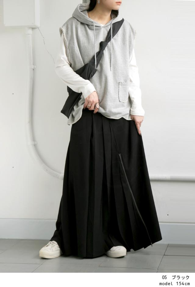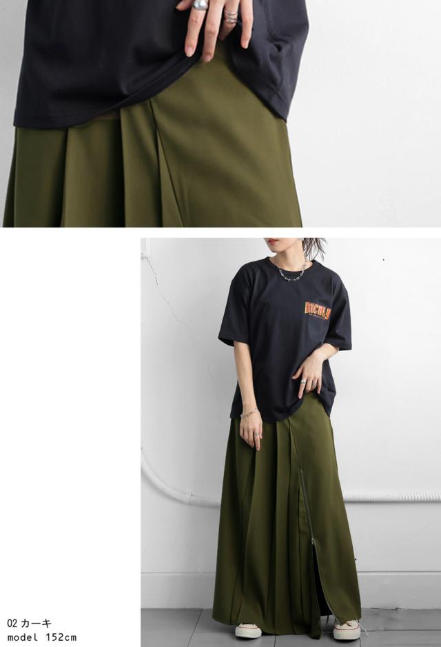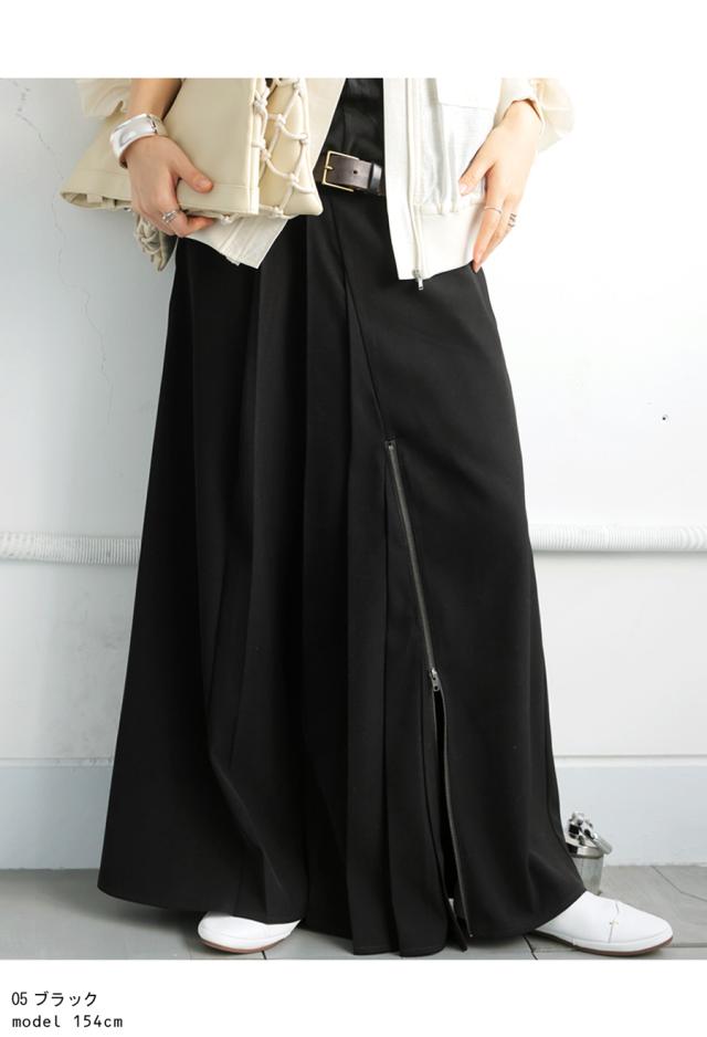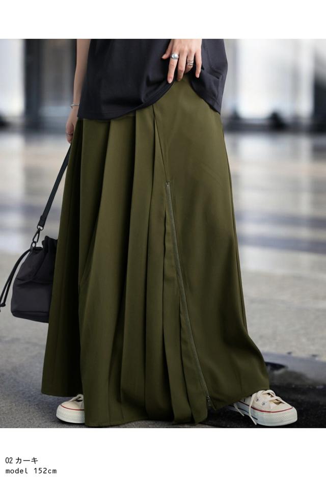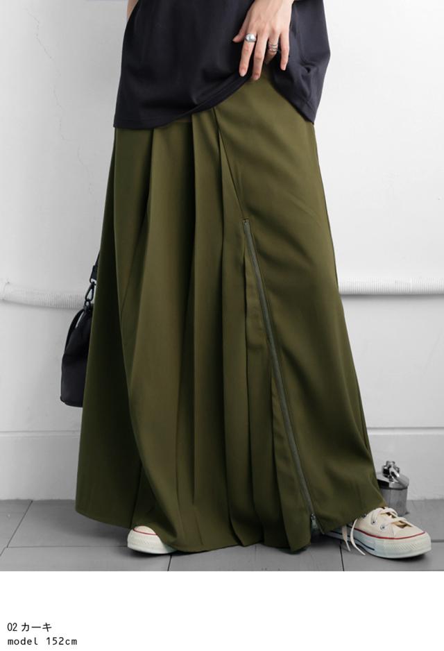 py-00792 ボトムス ロングスカート プリーツ 切り替え ファスナーデザイン Aラインシルエット ポケット付き ベルトループ ゆったり きれいめ 上品 モード 体型カバー 着痩せ 大きめ
