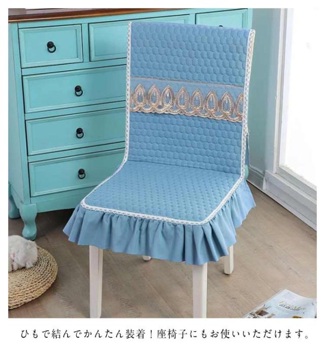 | ひもで結んでかんたん装着!ダイニングチェアや座椅子につけられるチェアカバーです。 椅子本体を汚れ・キズから守ります。 程よい凹凸感のある綿混素材で、シャリッとした肌ざわり。 かわいいフリルとレースデザイン。 ひもで結んでかんたん装着!座椅子にもお使いいただけます。 お部屋のアクセントに最適!洗濯機で洗えるから清潔にお使いいただけます。 | |