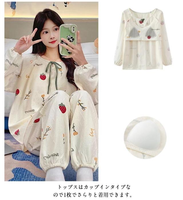 tシャツ セットアップ カップ付き 長袖 パジャマ 上下セット 入院 レディース 無地 部屋着 ルームウェア ロンT ゆったり 部屋着 寝間着 ロングパンツ 長ズボン リラックス ナイトウェア 可愛い ボーダー ルームウエア ルームウェア 産後 秋冬
