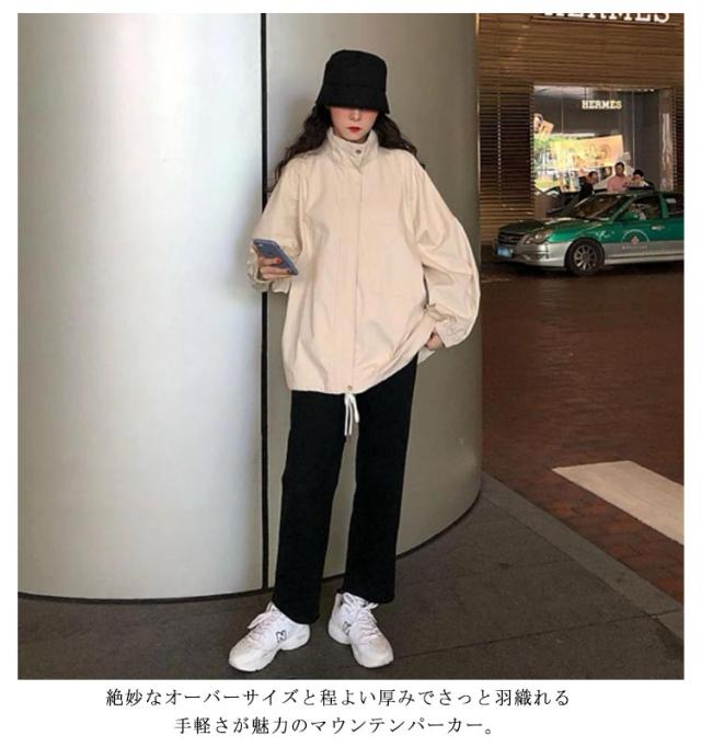 ブルゾン 長袖 秋冬 ミドル丈 レディース 春 ウインドブレーカー 長袖 薄手 パーカー 大人 ウインドブレーカー ジャケット アウター マウンテンパーカー 軽量 撥水 防風 ライトアウター スタンドカラー カジュアル ゆったり 羽織り 無地 ベージュ