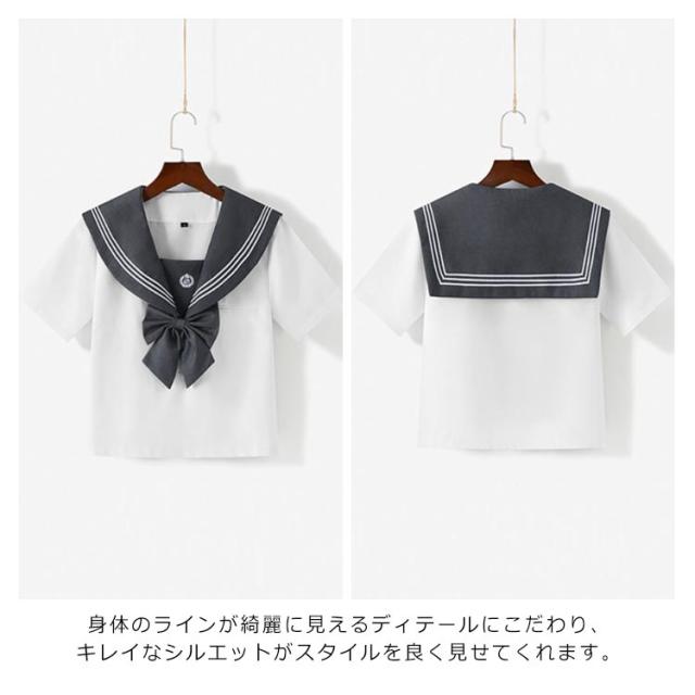 | セーラー襟のブラウスとミニ丈のプリーツスカートと蝶タイの3点セットです。 良質のリボンに、綺麗な折り目のプリーツスカートなど、清潔感溢れるセーラー服に仕上がっています。 高品質な生地で、縫製も丁寧に作られております。高級感ある色合いのリボンがアクセント。コスプレのクオリティーを引き上げてくれます。 靴下と合わせれば、よりキュートな女子高生が完成♪ 身体のラインが綺麗に見えるディテールにこだわり、キレイなシルエットがスタイルを良く見せてくれます。 豊富なサイズ展開で、自分にピッタリあったサイズが選べます。お好みのサイズ感をチョイスして、可愛く着こなして下さいね♪ | |