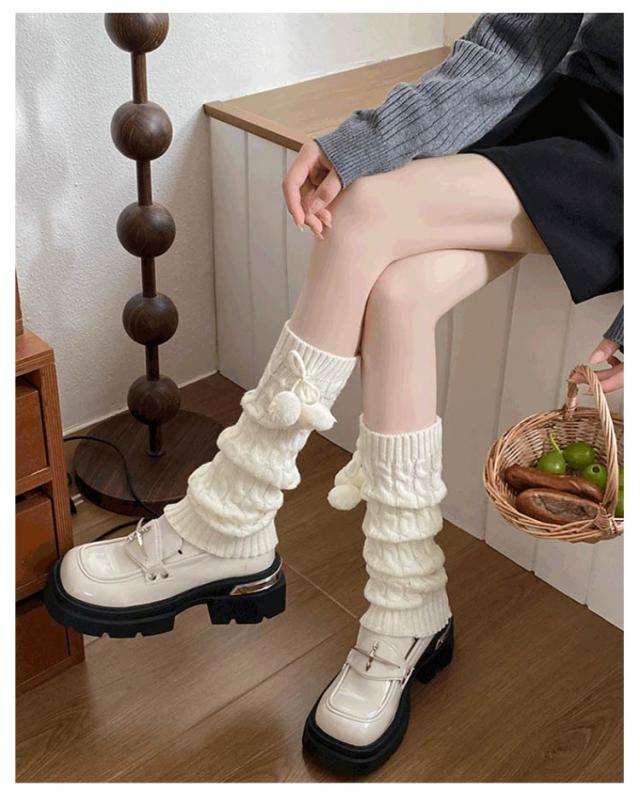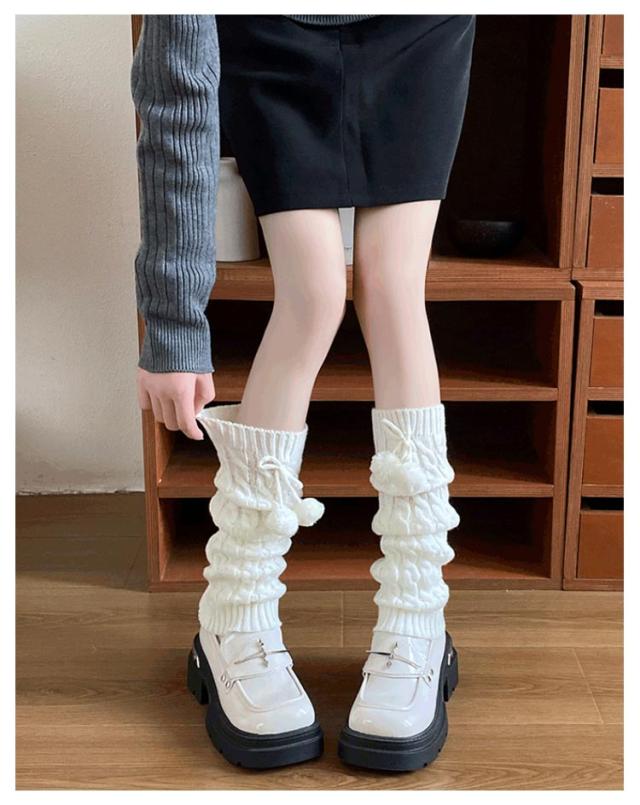 防寒 レディース レッグウォーマー ボンボン グレー シンプル ポンポンニットレッグウォーマー レッグウォーマー 黒 茶色 レッグウォーマー 韓国ゴルフウェア ゴルフウェア ブラック ホワイト ピンク ベージュ ブラウン ベージュ もこもこ 真冬 シンプル 女子 可愛い
