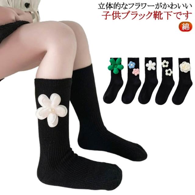 結婚式 子供 黒 ソックス 靴下 キッズ 靴下 かわいい 子供 フラワー クルー丈 入園 入学式 卒業式 卒園式 おしゃれ 発表会 フォーマル 女の子 ジュニア 綿 春夏秋冬 ブラック