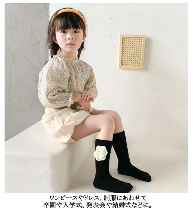 | 立体的なフラワーがかわいい子供ブラック靴下です。 綿で肌に優しく、サラッとした肌ざわりのソックスです。 ワンピースやドレス、制服にあわせて 卒園や入学式、発表会や結婚式などに。 | |