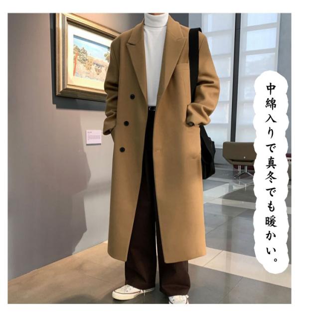 コート ウール アウター 暖かい メンズ フェイクウール カジュアル ロング丈 チェスターコート チェスターコート ドロップショルダー 中綿コート 防寒 通学 ビジネス 無地 ロングコート 通勤 ゆったり 冬服 秋服 冬 秋冬 着回し 韓国 ファッション