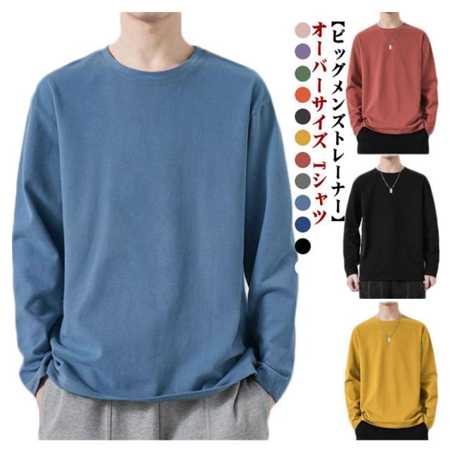 長袖 ビッグシルエット メンズ ビッグTシャツ 長袖Tシャツ Tシャツ メンズ 秋服 Tシャツ 黒 オーバーサイズ ロンT 黒 Tシャツ カットソー 長袖 無地 ブラック グレー オーバーサイズ ブルー 秋 ベージュ 秋物 メンズファッション