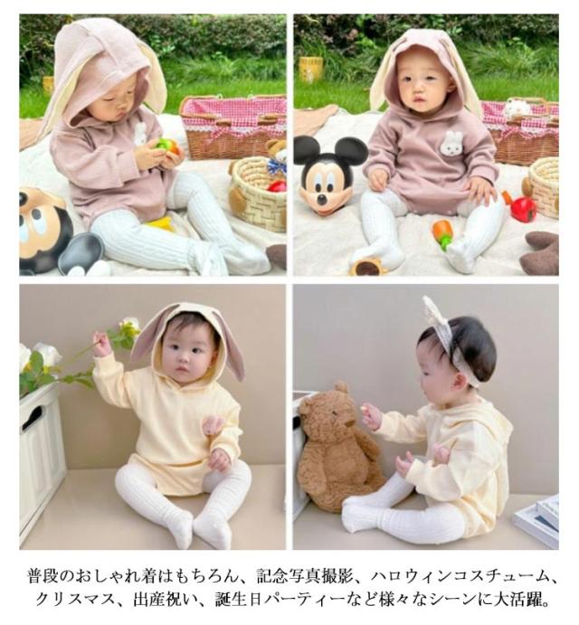 ハロウィン衣装 兎 うさ耳 ロンパース ベビー服 カバーオール 秋服 長袖 コスプレ ベビー服 新生児 つなぎ服 女の子 男の子 可愛い ポンポン尻尾 無地 赤ちゃん 子ども服 キッズ 写真撮影 出産祝い ギフト
