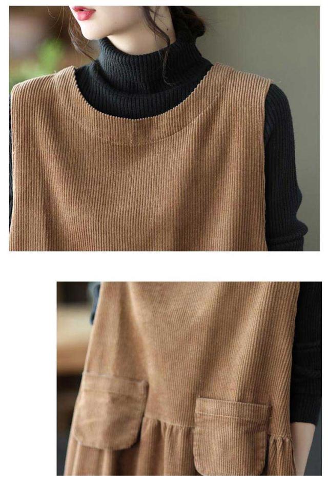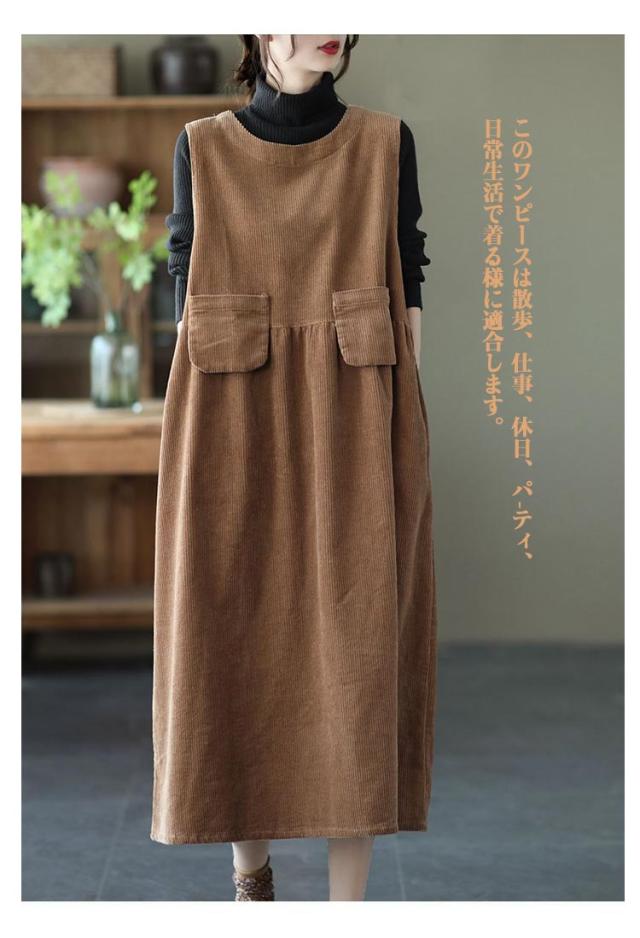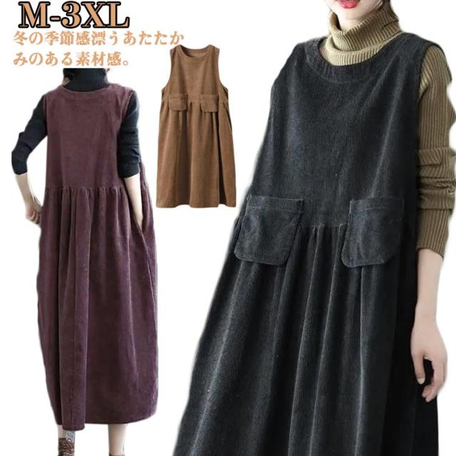 レディース ワンピース ワンピース ジャンパースカート 冬 サロペット 重ね着 ベスト 秋 コーデュロイ ロング ワンピース オールインワン ノースリーブ ワンピース オーバーオール シンプル 大きいサイズ レイヤード風 ゆったり