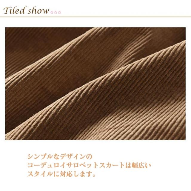 | このワンピースは散歩、仕事、休日、パ-ティ、日常生活で着る様に適合します。 シンプルなデザインのコーデュロイサロペットスカートは幅広いスタイルに対応します。 シルエットに拘った大人の女性にぴったりのジャンパースカートです。程よく肉感があり、秋冬の季節感漂うあたたかみのある素材感。 全体的に少し大きめなのでゆったり着れます。動きやすく着やすいです。 ちょっとしたお出かけや部屋着としても使えます。 | |