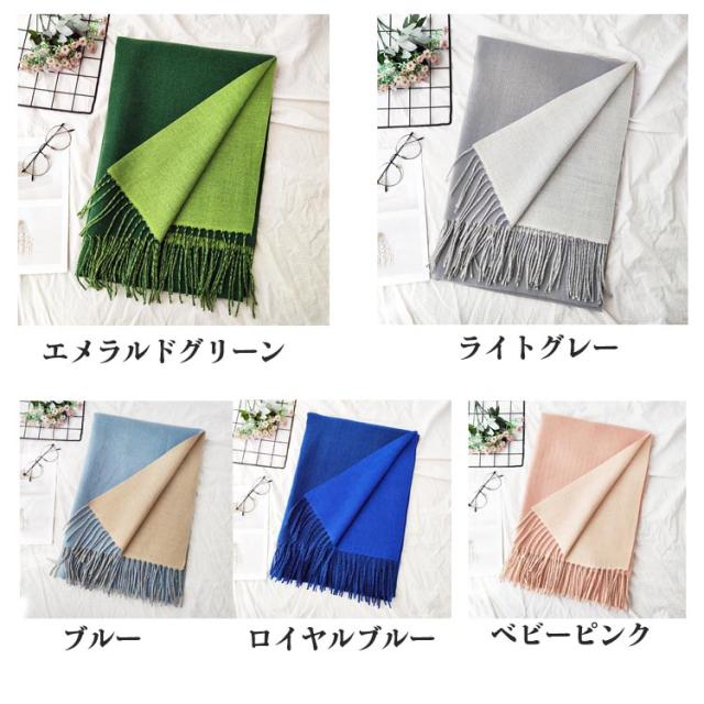 暖かい 厚手 マフラー 大判ストール 洗える 大判 カシミヤタッチ バイカラー リバーシブル フリンジ メンズ 男女兼用 肩掛け 防寒 ショール ふんわり素材 レディース かわいい 配色 ストール 女性 男性 女友達 無地 誕生日