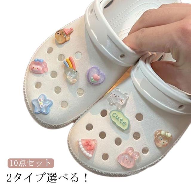 靴飾り 10点セット 飾り シューズアクセサリー シューアクセサリー アクセサリー サンダル シューパーツ シューズ かわいい シューパーツ おしゃれ ガールズ サンダル用 Diy クマ ハート 靴用デコレーション 靴用チャーム シューパーツ