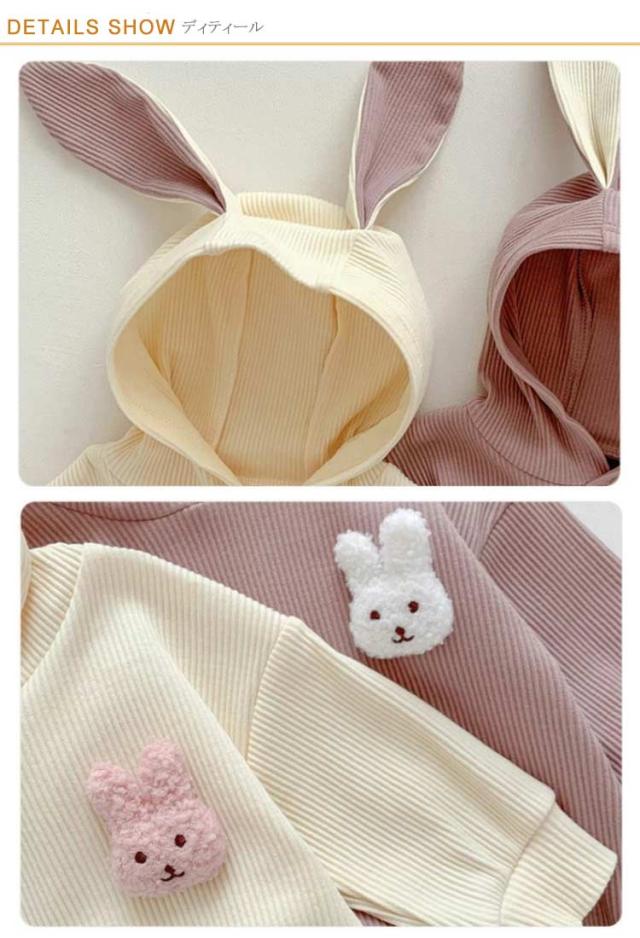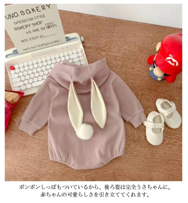 ベビー服 赤ちゃん ロンパース コスプレ 無地 カバーオール 兎 うさ耳 長袖 秋服 男の子 つなぎ服 女の子 子ども服 可愛い ポンポン尻尾 ベビー服 新生児 ハロウィン衣装 キッズ 写真撮影 出産祝い ギフト