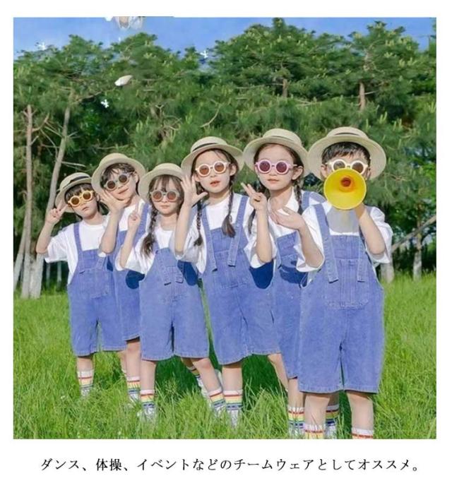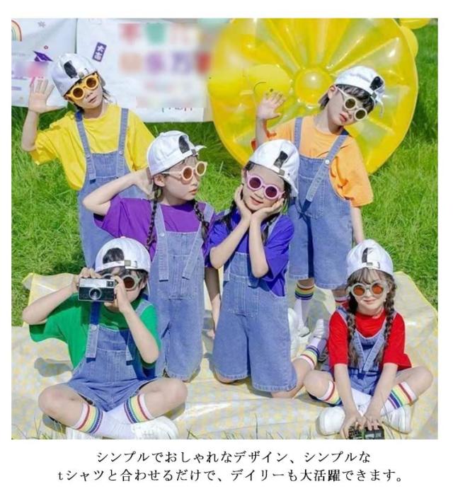 | 120-160cm!キッズダンス衣装。発表会や記念写真撮影にピッタリのデニムサロペットパンツ。 ダンス、体操、イベントなどのチームウェアとしてオススメ。 シンプルでおしゃれなデザイン、シンプルなtシャツと合わせるだけで、デイリーも大活躍できます。 | |