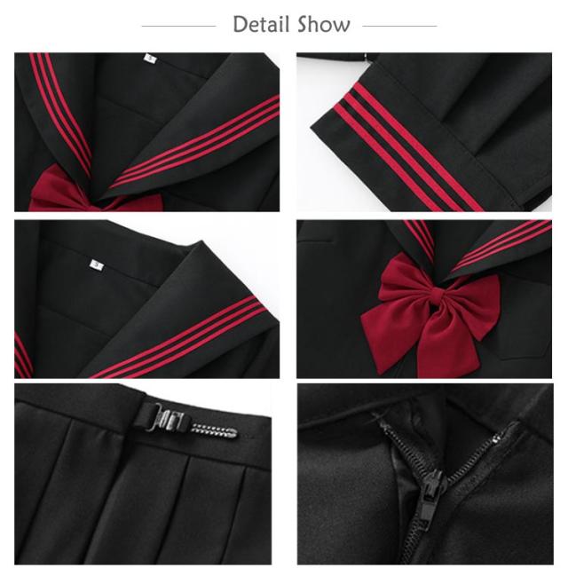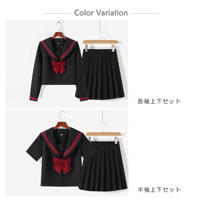 | セーラー襟のブラウスとミニ丈のプリーツスカートと蝶タイの3点セットです。 良質のリボンに、綺麗な折り目のプリーツスカートなど、清潔感溢れるセーラー服に仕上がっています。 高品質な生地で、縫製も丁寧に作られております。高級感ある色合いのリボンがアクセント。コスプレのクオリティーを引き上げてくれます。 靴下と合わせれば、よりキュートな女子高生が完成♪ 身体のラインが綺麗に見えるディテールにこだわり、キレイなシルエットがスタイルを良く見せてくれます。 豊富なサイズ展開で、自分にピッタリあったサイズが選べます。お好みのサイズ感をチョイスして、可愛く着こなして下さいね♪ | |