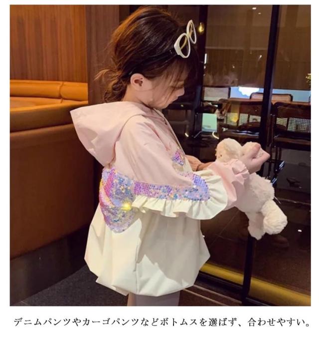 子供服 フリル×スパンコール 女の子 軽量 羽織り ブルゾン 子供アウター ジャンパー 長袖 ジャケット アウター かわいい 秋服 子供服 韓国 フリル×スパンコール 秋コート 春コート 子供服 100 90 ウィンドブレーカー 110 120 130 140cm