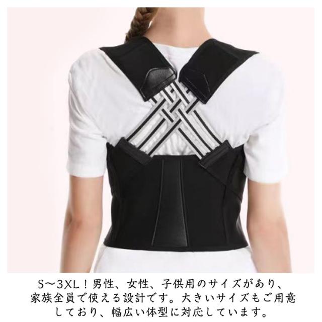 | 日常生活で重力や筋力の衰えにより徐々に正しい姿勢を失われていく方、正しい姿勢で理想のボディへ! 薄手で目立たないデザインなので、夏場でも快適に使用でき、どんな服装にも合わせやすいです。 子供から大人まで幅広いサイズが揃っており、家族全員での使用が可能です。 背筋を自然に伸ばし、肩の位置を正しく保つことで猫背や巻き肩を効果的に矯正します。姿勢を改善することで、体のバランスが整い、健康的なライフスタイルをサポートします。 高通気性のメッシュ素材を使用しており、長時間の着用でも蒸れずに快適。特に暑い時期や長時間のデスクワークに最適です。 マジックテープは調整可能で、自分の体型や好みに合わせてフィット感を自在に調整できます。サイズ調整が簡単で、長期間使用できます。 シンプルな設計で、誰でも簡単に着脱できます。初心者でも安心して使用でき、忙しい日常でも手間なく利用可能です。 S〜3XL!男性、女性、子供用のサイズがあり、家族全員で使える設計です。大きいサイズもご用意しており、幅広い体型に対応しています。 正しい姿勢をサポートすることで、自然な効果も期待できます。 | |