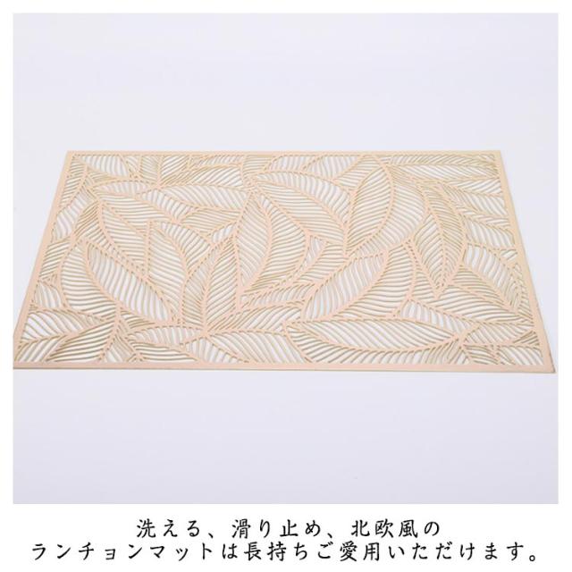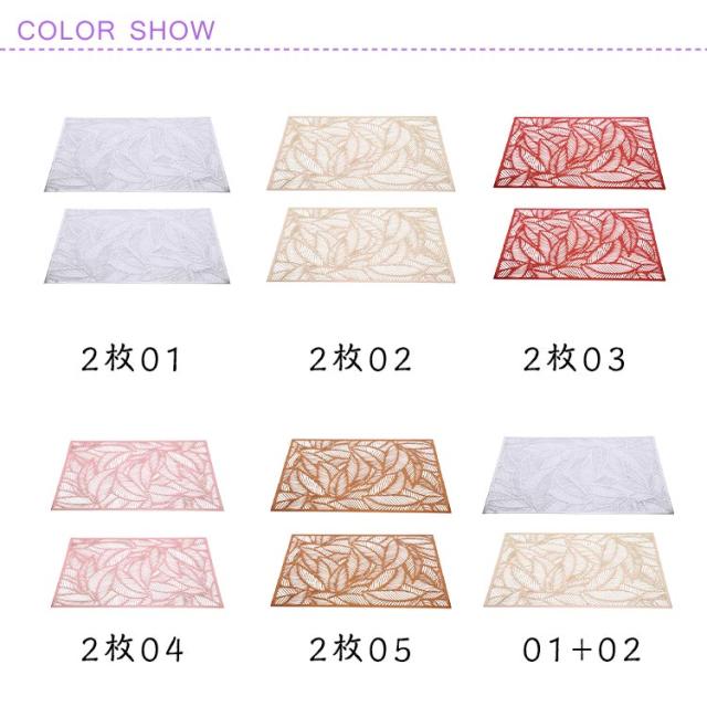 | 【2枚セット】 全5色、葉っぱの形と透かしのデザインの耐熱ランチョンマット。 おしゃれなプレースマットだけでなく、キッチンをより美しくなります。 洗える、滑り止め、北欧風のランチョンマットは長持ちご愛用いただけます。 家庭用にはもちろん、レストラン、ホテル、料理店など場所にもおすすめです! | |