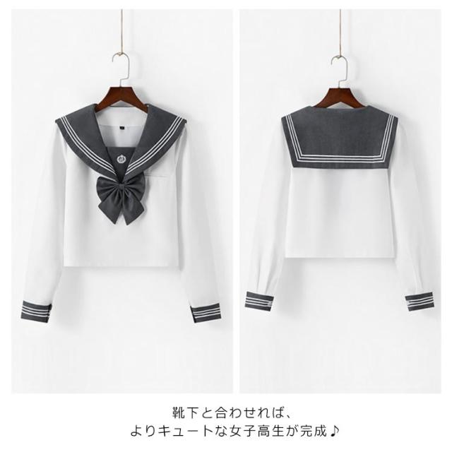 | セーラー襟のブラウスとミニ丈のプリーツスカートと蝶タイの3点セットです。 良質のリボンに、綺麗な折り目のプリーツスカートなど、清潔感溢れるセーラー服に仕上がっています。 高品質な生地で、縫製も丁寧に作られております。高級感ある色合いのリボンがアクセント。コスプレのクオリティーを引き上げてくれます。 靴下と合わせれば、よりキュートな女子高生が完成♪ 身体のラインが綺麗に見えるディテールにこだわり、キレイなシルエットがスタイルを良く見せてくれます。 豊富なサイズ展開で、自分にピッタリあったサイズが選べます。お好みのサイズ感をチョイスして、可愛く着こなして下さいね♪ | |