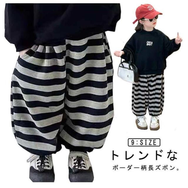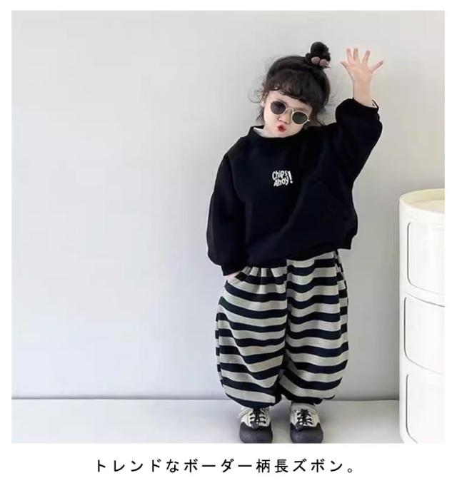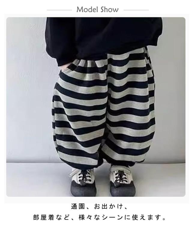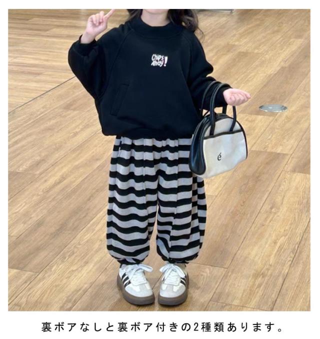 子供服 ボーダー柄 ロングパンツ ズボン 裏ボア 厚手 ゆったり ボトムス 部屋着 ルームパンツ 通園 お出かけ 女の子 80-160cm 春 秋 冬 暖かい 送料無料