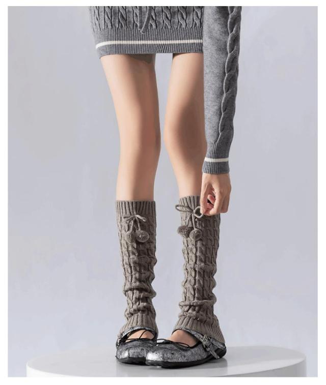 レディース ベージュ 黒 レッグウォーマー レディース ポンポンニットレッグウォーマー 韓国ゴルフウェア ゴルフウェア 防寒 レッグウォーマー ベージュ シンプル レッグウォーマー ブラック グレー ピンク ホワイト ブラウン 茶色 もこもこ 真冬 シンプル 女子 可愛い