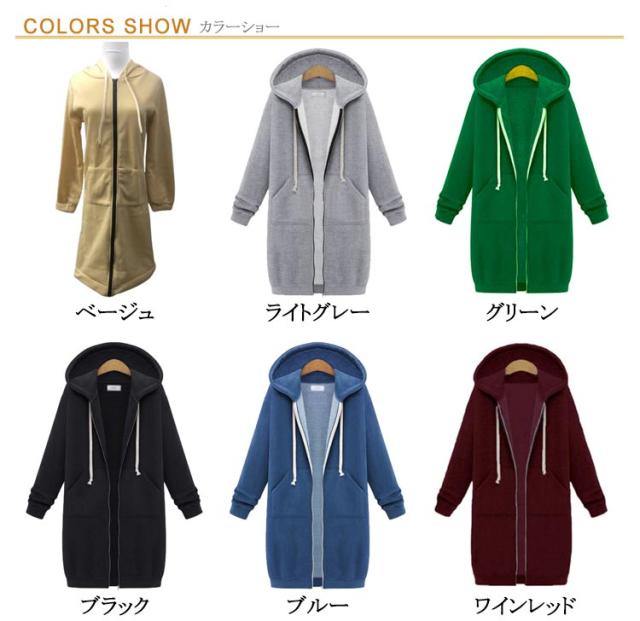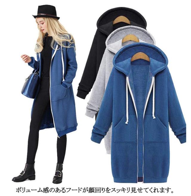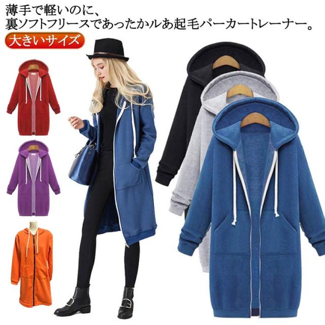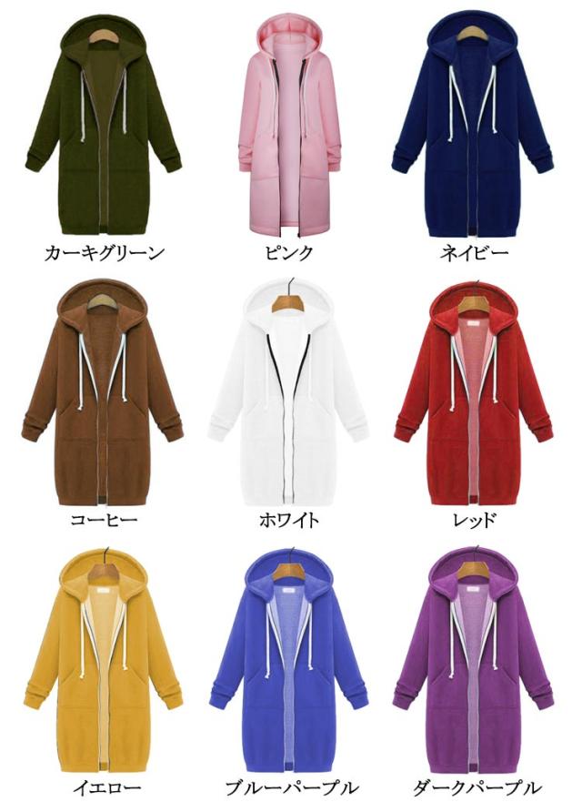 レディース ロングパーカー 裏起毛 ジップアップ レディース 無地 裏起毛 ロングパーカー 冬 春秋 ソフト起毛 カジュアル ルームウェア ジップパーカー コート 体型カバー ロングパーカー 防寒 大きいサイズ フード付き 20代 30代 40代