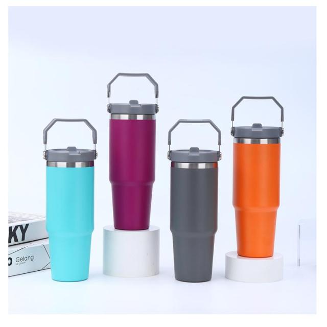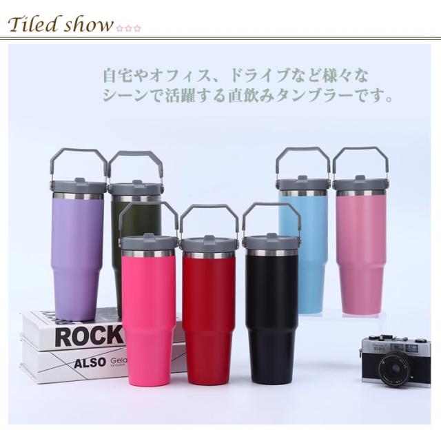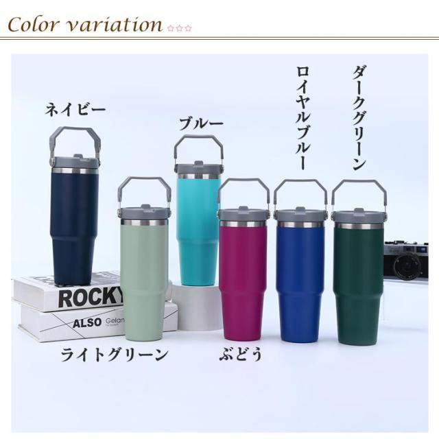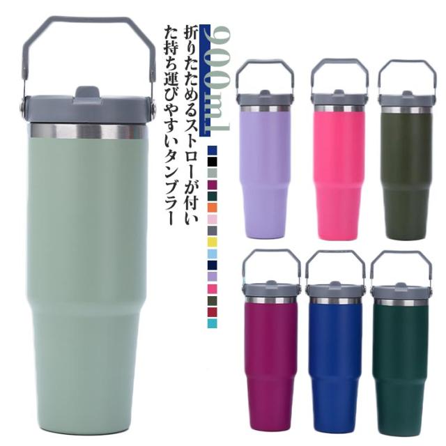 真空ウォーターボトル ステンレス ワンタッチ 保温 タンブラー 真空断熱 ストロー ハンドル 広口 直飲み ボトル 保冷 900ml ステンレスタンブラー タンブラー 大容量 持ち運び アウトドア キャンプ スポーツ 部活 運動会 登山