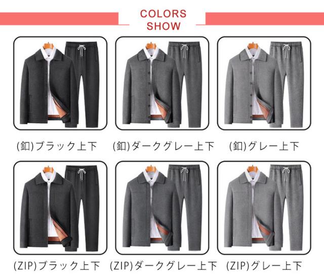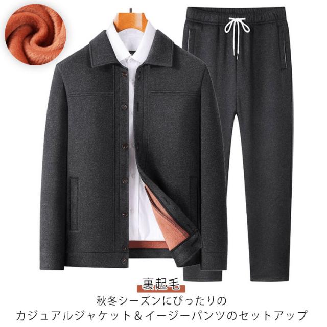 ジャケット メンズ ジップアップ セットアップ 裏起毛 前開き ジョガーパンツ 防風 パンツ アウター 上下セット イージーパンツ フリース ブルゾン あったかパンツ フロントボタン 敬老の日 紳士 カジュアル 父の日 選べる2タイプ スポーツ 秋