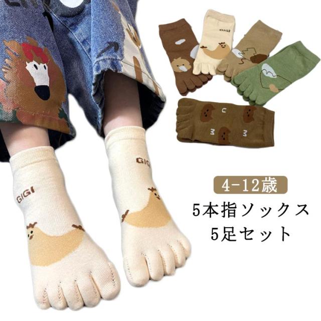 男の子 ショートソックス 女の子 5本指 靴下 8歳 くつ下 5足セット キッズ 5本指ソックス 外反母趾予防 春秋冬 2歳 3歳 5歳 可愛い 子供 5本指靴下 幼稚園 子供 五本指ソックス 冷えとり 保温 吸汗 クルー丈