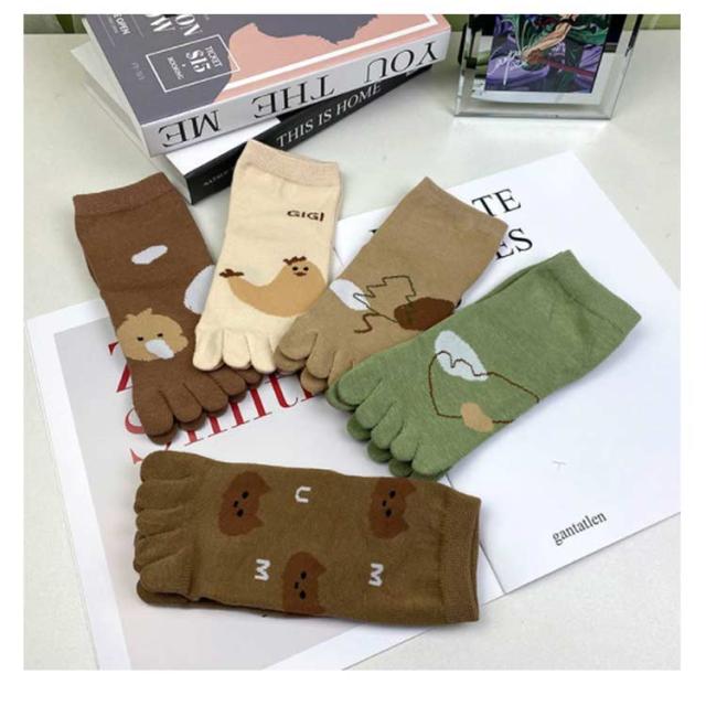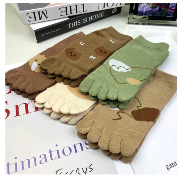 | 5本指ソックス・5足セット 4-12歳 指先までしっかりフィットしする5本指なので、裸足感覚で足の指が自由に動く。 5本指ソックスは1本1本の指を覆うので、一番汗をかきやすい指と指の間のムレを吸収し臭いも軽減します。匂いに気になる方におすすめ!! 蒸れにくく保温性が高いので不快感が少なく、温かさをキープします。 それぞれ5足とも異なる柄で、毎日を飽きさせない5足組セットです。 | |
