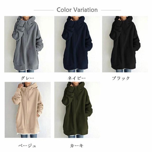 パーカー ボリュームネック ロング丈 長袖 ハイネック 送料無料 送料無料 レディース ジップアップパーカー フード付き スウェット 無地 薄 裏起毛 ロングカーディガン ロングパーカー トップス 体型カバー 着痩せ あったか おしゃれ ゆったり 大きいサイズ 防寒 秋冬